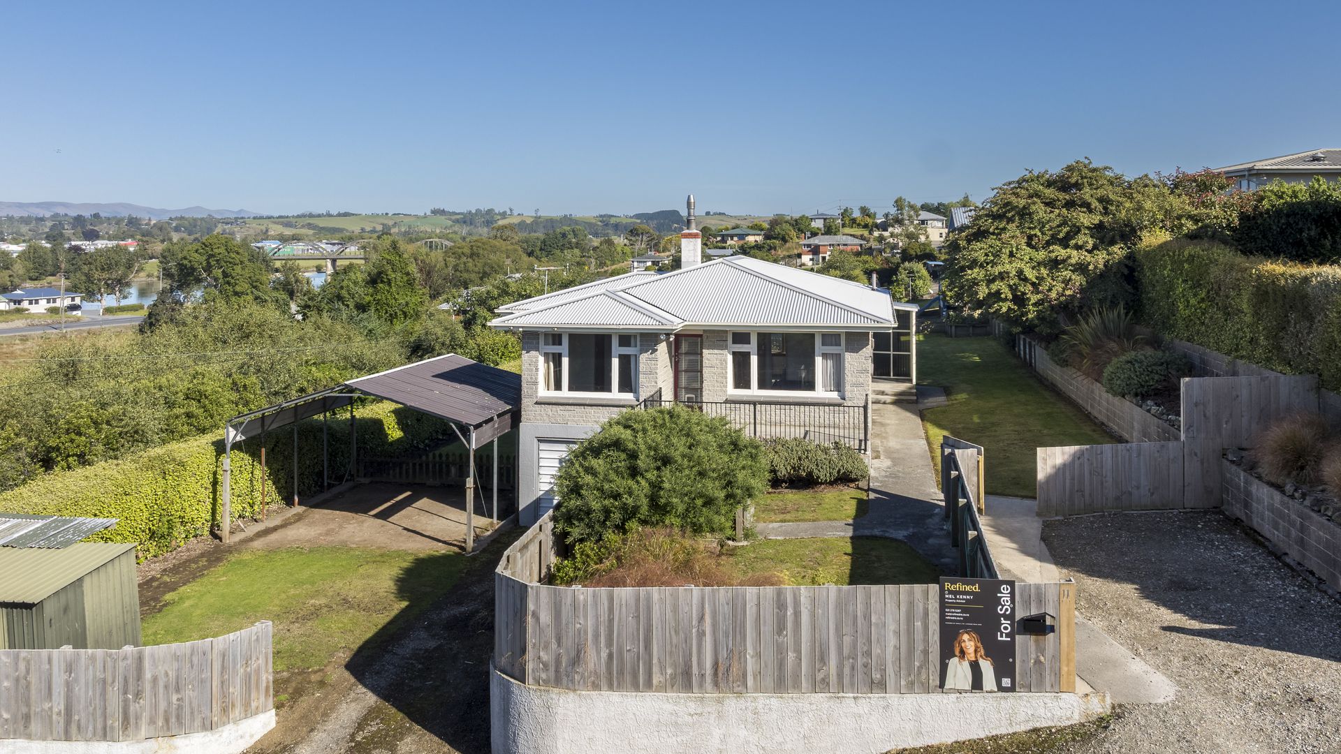 Elevated nicely high and dry this solid home delivers the best of both worlds Elevation, Views and Everyday Convenience. Enjoy leafy outlooks with peeks of the river, all while being an easy stroll to the town centre and local school. Location goals: ticked under the house, basement garaging offers generous space for vehicles, tools, toys, or the ultimate lads pad. Add in the double carport and there’s no shortage of off-street parking for visitors, trailers, or weekend projects. The fully fenced section is a win for families and fur babies alike safe, secure, and spacious. There’s room for kids to roam free, pets to play, veggie patches to thrive, and even a glasshouse for those home-grown ambitions. While the kids are happily occupied in their own play area, you can knock over the chores indoors with peace of mind.